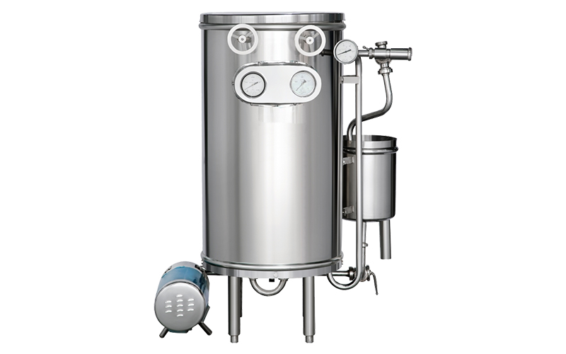 物料通過供料泵進入雙套盤管的外層流道、由內層流出的熱料間接加熱而得到預熱,當物料進入設置在高溫桶內的高溫盤管時,由于桶內的蒸汽間接加熱而被加熱到需要的滅菌溫度,然后在桶外單旋管內保溫而使物料被殺滅,當回到雙套盤管時,物料便進入內層流道,被外層冷料所冷卻,從而使出料溫度顯著下降。